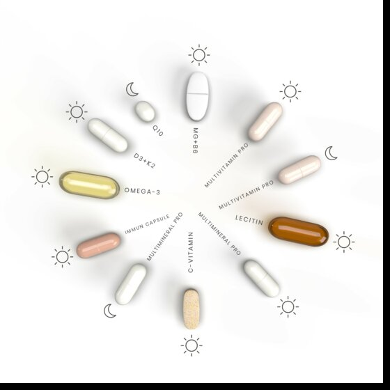 • Принимайте одну таблетку витамина С с первым приемом пищи в день (таблетка песочного цвета)